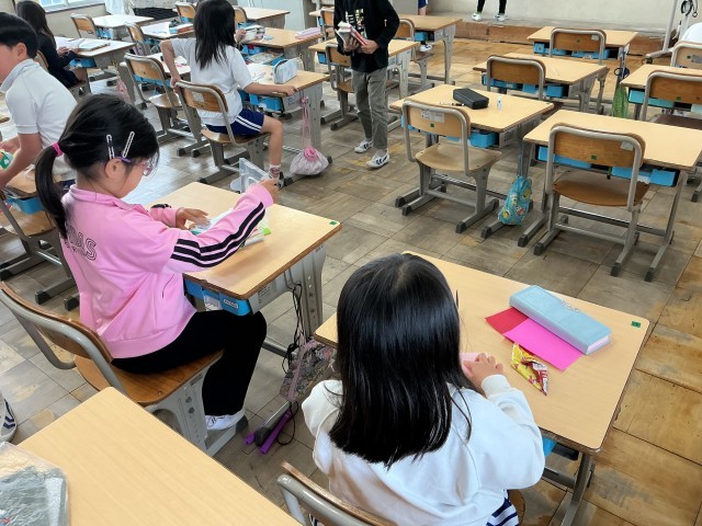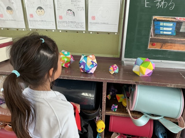 2年生の教室では、折り紙に夢中な子どもたちが。