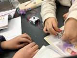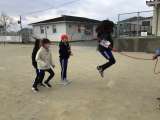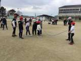 なわとび記録会の練習 6年生が1年生に記録会の取り組み方を優しく教えます。