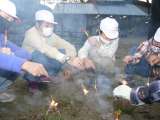 いっしょうけんめい火起こし器を動かして、ようやくついた種火が炎になったときのうれ...