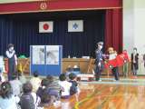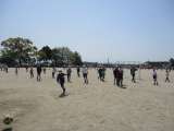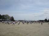 よく晴れた午後、運動場で6年生が整列して何かポーズをとっていました。「何をやって...