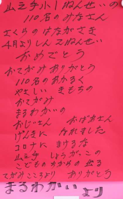 1年生(新2年生)が、「昔あそび」を教えてもらったお礼の手紙を送ったところ、丸和会の方々から、うれしいお返事をいただきました。