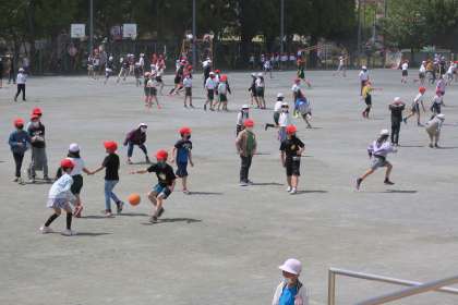 10時過ぎには、運動場の温度計が30度になりました。湿度がとても低いので、WBGTは19度です。気温に体がついていっていないので、熱中症に注意しています。衣服の調節と水分補給を行うように、声を掛けています。