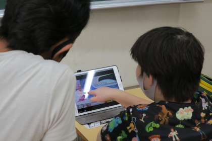 10組の自立活動学習の研究授業です。これからの季節、熱中症にならないように遊ぶにはどうすればよいかを学習しています。ビデオを視聴して、具体的な学校生活の場面で、適切な行動を考えました。新しい遊びを知り、休み時間が待ち遠しそうです。
