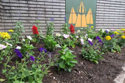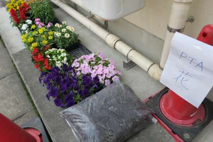 PTA環境美化委員会が「花いっぱい活動」で、校門脇の花壇の植え替えを行いました。きれいな花々が子どもたちを迎えてくれます。ありがとうございました。