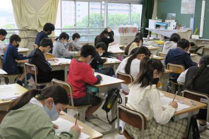 今日は6年生を対象にした、全国学力・学習状況調査を行っています。国語、算数と勉強や生活の様子について答えます。