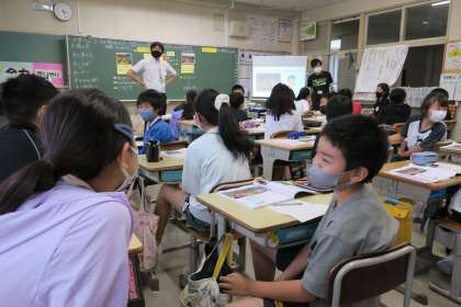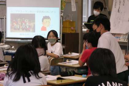 6年道徳の研究授業です。1964年東京オリンピックに向けての吹浦さんの国旗作りを通して、国際理解、国際親善に努めようとする態度を養います。「外国の人たちの“えー、こんなことあるの!?”とかあるけど、それは外国の人にとって大切なことかもしれないから、受けとめて尊重してあげたいと思います」と授業を振り返っていました。