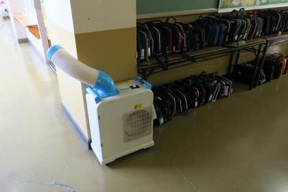 気温が高くなってきました。廊下にもスポットクーラーを設置して、温度を調節しています。