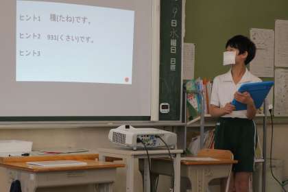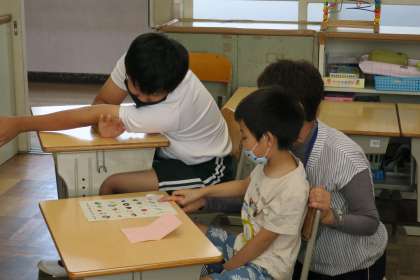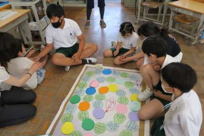 9組の自立活動の研究授業です。スリーヒントクイズやすごろく遊びを通して、他の人との関わり方や楽しい過ごし方について学んでいきます。6年生はタブレットのパワポを使ってクイズを出していました。すごろく遊びでは、止まったマスの問いに答えます。終わった後に、友達が何と言ったかを思い出して答えていました。参観した先生方も楽しく過ごすことができました。