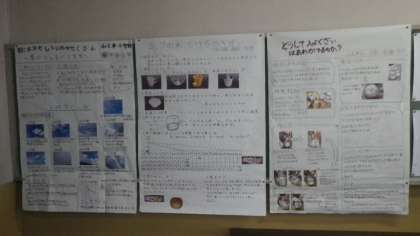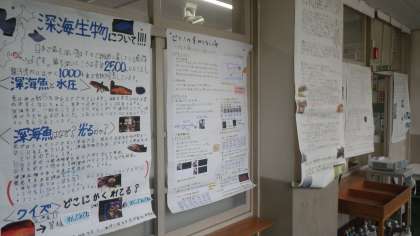 山小百科事典 公開日 2021/09/02 更新日 2021/09/02 校長室から 教室の廊下側にたくさんのB紙(模造紙)が掲示してあります。児童が夏休みに取り組んだ「自由研究」です。研究の内容もさまざまあり、まるで百科事典のようです。いろいろなことに興味や関心をもって、人生をより豊かに楽しくしていきましょう。