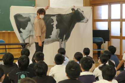 いのちをいただく 公開日 2021/10/11 更新日 2021/10/11 校長室から 6年生が、元酪農家 久保田健一氏をお招きして学校保健委員会を行いました。給食を食べる前、当番が「手を合わせて。いただきます」と声をかけます。その意味を改めて考える機会となりました。