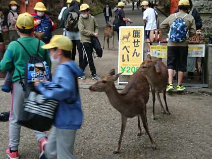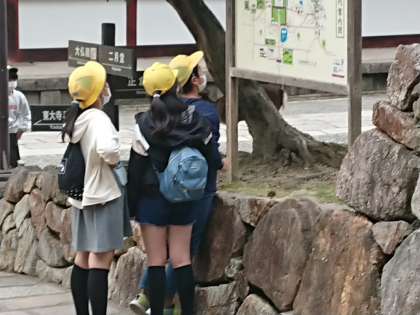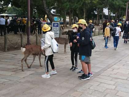奈良公園を班別で散策しています。