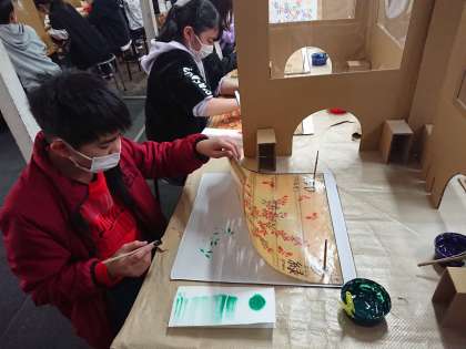 京友禅体験をしています。修学旅行の最後の活動となります。