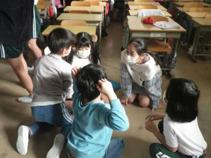 今日はそれぞれの教室に分かれて「縦割り遊び」をしました。6年生がメンバーに合わせて選んだゲームやクイズ、トランプなどで、楽しい時間を過ごしました。