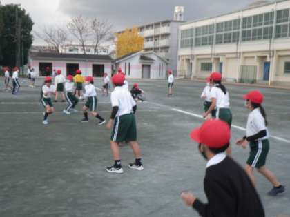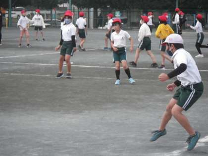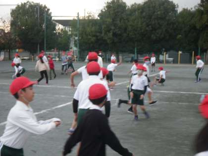 5年生が、キャンプが日帰りとなったためにできなかったレクリエーションをやっています。