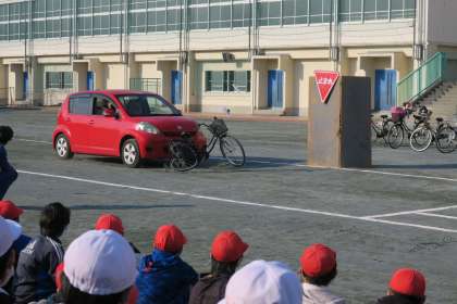 最初に、時速40kmで自動車が自転車に衝突するところを見ました。その音の衝撃と自転車の変形に息をのみました。事故では実際にどんなことが起こるのか、人はどうなってしまうのかが分かりました。自分の身は自分で守るという気持ちを高め、行動に移していってほしいと思います。