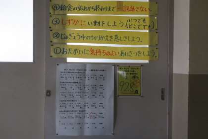 3年教室の掲示物です。進級に向けて「四年生への道」として自分たちの学校生活を振り返っています。表を見ると日が進むにつれ点数が上がっています。4年生に向けて気持ちが高まっています。いいですねぇ、3年生!