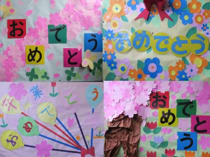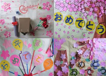 卒業に向けてお祝いの飾りつけがいっぱいです。