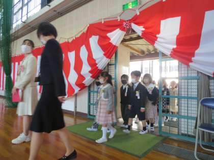 入学式 公開日 2022/04/06 更新日 2022/04/06 校長室から 穏やかな日差しの中、新入生133名を迎えて入学式を挙行しました。新1年生に向けて「1年生のはじめの一歩」という話をしました。「はじめ」の 「は」…はい!と元気よく返事をしよう 「じ」…自分でできることは自分でしよう 「め」…ごはん(めし)、特に朝ごはんをしっかり食べよう 「は」「じ」「め」を心がけ、楽しい山之手小学校にしていきましょう。