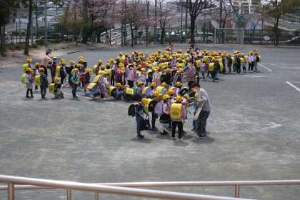一斉下校 公開日 2022/04/07 更新日 2022/04/07 校長室から 初めての一斉下校です。1年生が先に運動場に出て通学班ごとに整列し、班長が迎えに行きます。1年生の保護者の皆さま、お迎えをありがとうございます。
