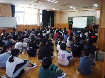 6年学年集会(4.8) 公開日 2022/04/08 更新日 2022/04/08 各学年から 学年集会をしました。学年行事のことや学習や生活について先生の話を聞きました。また、学年目標「第六感」について考えました。心で感じ心で動く一年にしたいと思います。