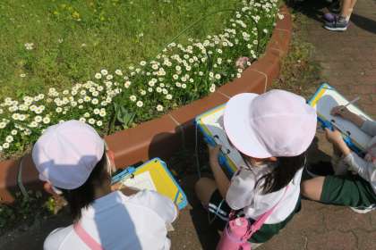 ラッキーアイテム 公開日 2022/04/20 更新日 2022/04/20 校長室から 2年生が校庭にはえている植物を探して、スケッチをしていました。白い花はノースポールです。マーガレットによく似ています。 学校だよりで「四つ葉のクローバ」を話題にしました。3分ほどで見つけることができました。