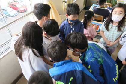 朝、3年生の教室の前を通ると、子どもたちが集まっていました。モンシロチョウが羽化したようです。また、別のアオムシが脱皮したことも教えてくれました。確かにビデオはよく分かります。しかし、ビデオにはない感じるもの、心が動かされるものが実物にはあります。