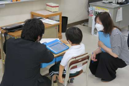 ことばで絵を伝える 公開日 2022/06/02 更新日 2022/06/02 校長室から 11組国語科の研究授業です。言葉で、示された絵と同じ絵を相手にかいてもらうためには、どのように伝えればよいかを学習します。説明が不十分だと、いろいろな絵になってしまうことを知り、伝える順番や内容、言い方をタブレットを使って整理しました。