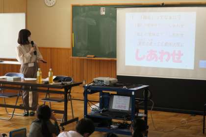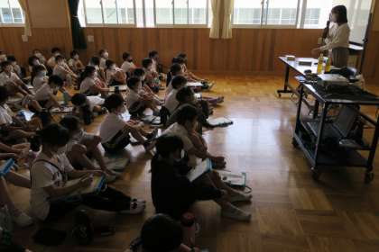 「福祉ってなに?」 公開日 2022/06/02 更新日 2022/06/02 校長室から 3年生が社会福祉協議会から講師を招き、「福祉ってなに?」をテーマに講話をしていただきました。3年生は総合的な学習の時間で、障がい者福祉について学習しています。