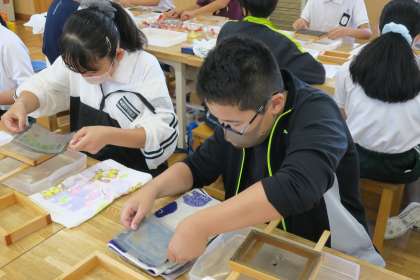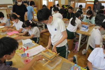 6年生が小原和紙の紙すき体験を行いました。小原和紙は室町時代から今日に受け継がれています。3月には小原和紙の卒業証書を受け取ります。体験を通して、その自覚が少し高まった気がします。