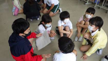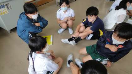 縦割り活動(異学年で一緒になって行う活動)の顔合わせ会を行いました。はじめはドキドキやそわそわ感が伝わってきましたが、ゲーム風の自己紹介が終わるころには、笑顔があふれていました。
