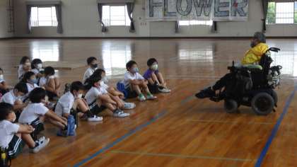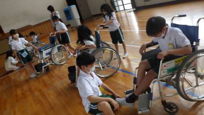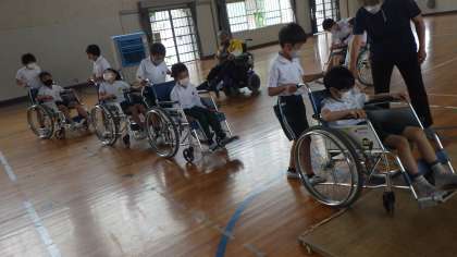 車いすの使い方を講師の方々に教えていただきました。車いすに乗る体験と車いすを押す体験をしました。
