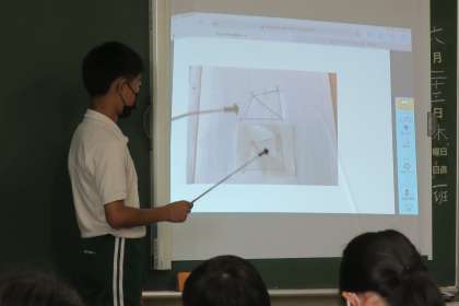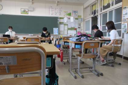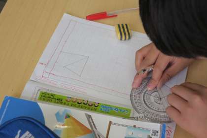 コンパス派、分度器派 公開日 2022/06/23 更新日 2022/06/23 校長室から 5年算数科の研究授業です。合同な四角形をかくためには、どうすればよいかを考えます。2つの三角形をかけば四角形になるという見通しをもって、既習の三角形のかき方を使って作図をしました。コンパス派、分度器派、両刀使いなど、それぞれが得意な方法で取り組み、タブレットで紹介しました。 研究授業の後は協議会を行って、よりよい授業づくりにつなげています。