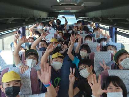 秋晴れのもと、元気に出発しました。「行くぞ!!和の街 京都・奈良」〜未来へ羽ばたけ 114人の自立〜