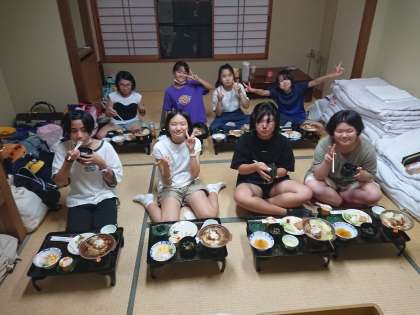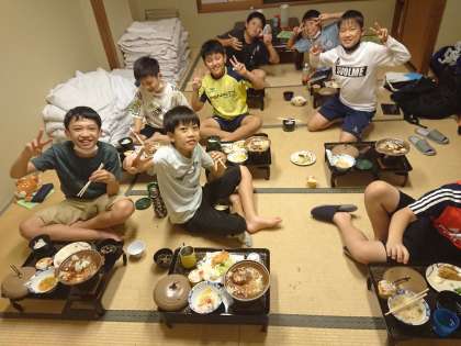 夕食をいただいています。たくさん活動したので、お箸がすすみます。