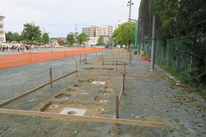 遊具設置工事が着々と進んでいます。ジャングルジムができるようです。
