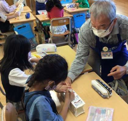 2年ものづくり体験(10.14) 公開日 2022/10/14 更新日 2022/10/14 各学年から ものづくりサポーターの方から、動くおもちゃの作り方を教えていただき、全員が満足のいくおもちゃを完成させました。 その後体育館に行き、コトコトコトコト車やダーツを作って楽しく遊びました。