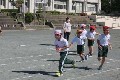 初めてのバトンパス 公開日 2022/10/14 更新日 2022/10/14 校長室から 3年生がリレーの練習をしています。リレーは初めてなので、練習から大盛り上がりです。上手くバトンパスができるかな。