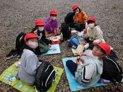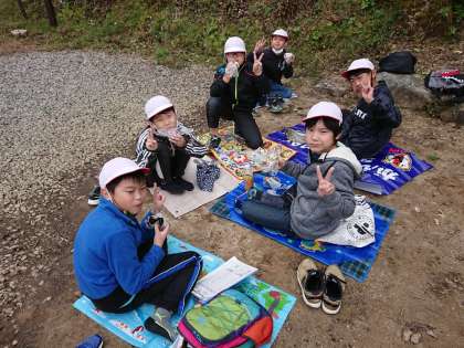 これからオリエンテーリングです。最初に腹ごしらえしている班もいます。