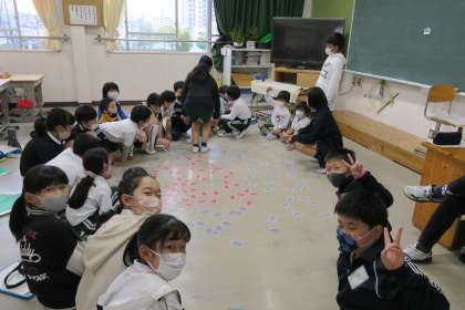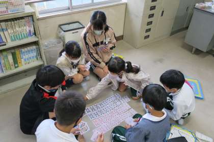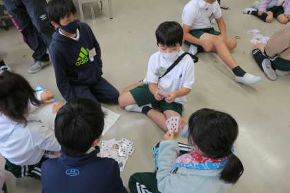 異学年でトランプをして遊んでいます。お互いに慣れ、リラックスして楽しんでいます。
