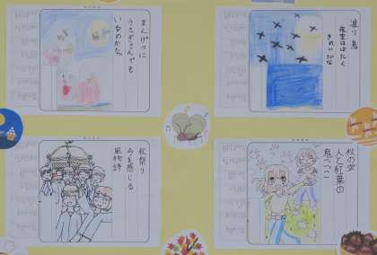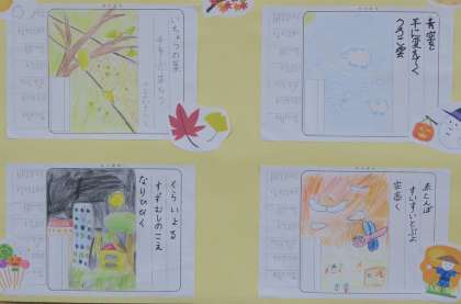 秋の俳句 公開日 2022/11/10 更新日 2022/11/10 校長室から 校長室に届いた「秋の俳句」を紹介します。 渡り鳥 夜空はばたく きれいだな 秋の空 人と紅葉の 鬼ごっこ まんげつに うさぎさんでも いるのかな 秋祭り 今を感じる 風物詩 青空を 羊に変えてく うろこ雲 赤とんぼ すいすいとぶよ 空高く いちょうの葉 手をふり落ちる さよならと くらいよる すずむしのこえ なりひびく 校庭のイチョウが少し黄色くなってきました。秋の深まりを感じます。