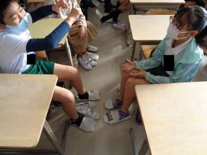 5年いのちをまもる日(11.25) 公開日 2022/11/25 更新日 2022/11/25 各学年から 豊田市役所防災対策課、愛知工業大学、豊田市赤十字奉仕団の方々をお招きし、防災学習を行いました。ダンボール間仕切りをしたり、簡易スリッパを作ったり、マイタイムラインを考えたりと様々な体験活動を通して防災に対する意識をより一層高めることができました。