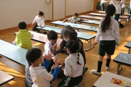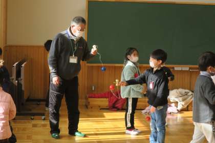 見て見て 公開日 2023/01/13 更新日 2023/01/13 校長室から 1年生が「昔の遊び体験」で、ボランティアの方々にお手玉やけん玉の遊び方を教わりました。会場を訪れると「見て見て」とできるようになった様子を披露してくれました。自分で考えたり工夫したりできる遊びの面白さを感じられたことでしょう。笑顔と歓声があふれていました。ボランティアの皆さん、ありがとうございました。