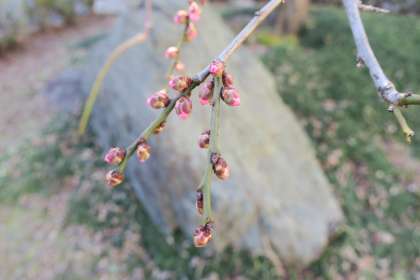 立春を過ぎ、ロータリーのしだれ梅のつぼみもふくらんできました。
