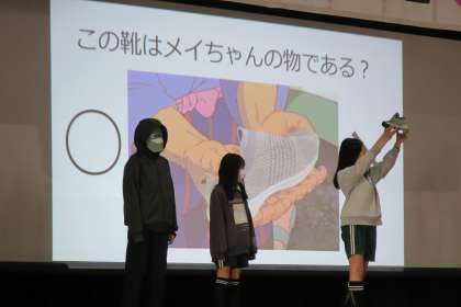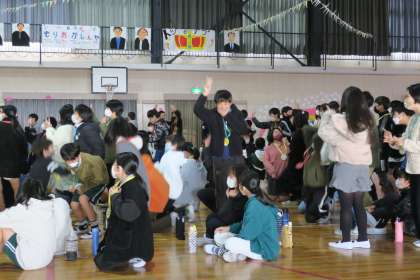 体育館で5年生が主催する「6年生を送る会」です。