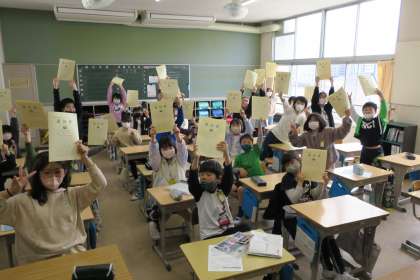 修了式の後、担任の先生から言葉を添えて通知表が渡されました。