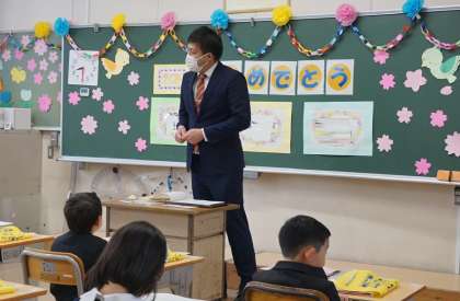 やる気に満ちた子どもたちの表情、明るいあいさつ。新年度にふさわしい、爽やかな一日となりました。「あいうえお」の合言葉のもと、安心を届けられる学校づくりを教職員一同、精一杯努めてまいります。