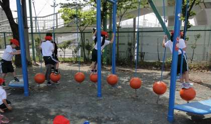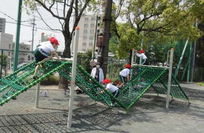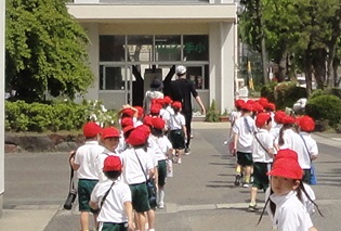 1年生が、遊具の使い方の学習をしました。先生の話をよく聞いて、安全に遊ぶことができました。教室に戻るときは、きちんと並んで帰ることもできました。できることがどんどん増えています。