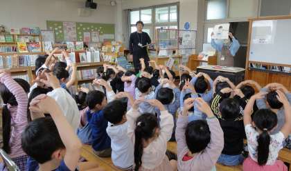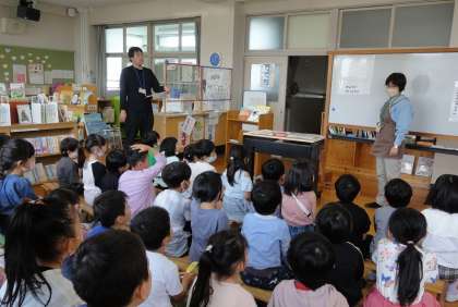 本校は週に2回程、学校図書館司書さんが来校し、環境整備や利用指導等してくださっています。今日は1年生が、図書館の使い方を教えてもらいました。1年生は、どんな本を借りようかとわくわくしながら、楽しそうに学習をしていました。