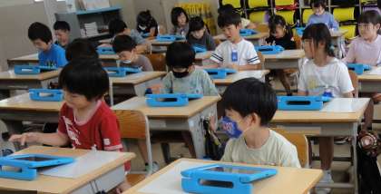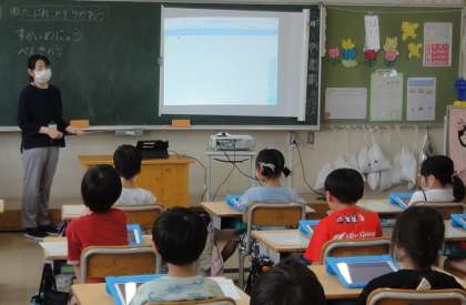 1年生の学習用タブレットの使い方の指導が始まりました。タブレットの大切さや操作方法、個人情報の取扱い等、一つ一つ確認しながら指導をしています。