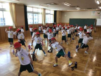 1年生の体育で、地域学校共働本部に依頼し作成していただいた紙てっぽうを使って、ボールを投げる動きを養う授業をしました。紙てっぽうを鳴らすには、腕を大きく振り下ろす必要があります。その動きがボールを投げる動きにつながります。子どもたちは、やり方を変えながら上手に音を鳴らしていました。ご家庭でも、手軽に作れる紙てっぽうで、投げるトレーニングをしてみてはいかがでしょうか。